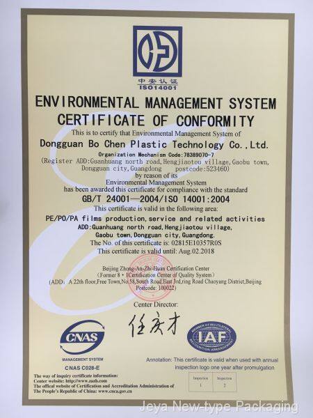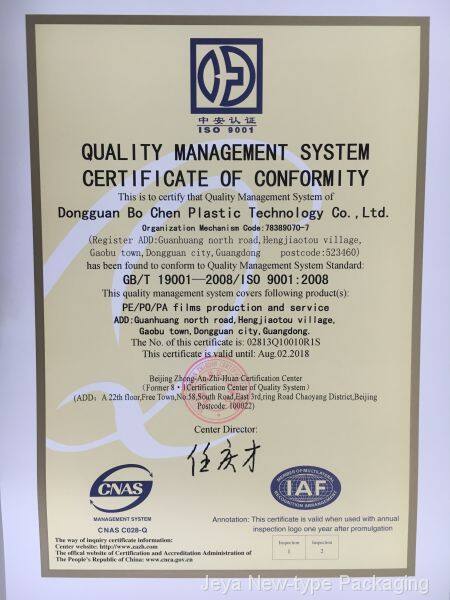 Dongguan Jeya New-type Material Co,.Ltd, была основана в 2012 году. Мы специализируемся на производстве экологически чистых упаковочных материалов для продуктов питания, таких как многослойные вакуумные пакеты/рулоны, алюминиевые фольгированные пакеты, растягивающая пленка и ПЭ пленка.